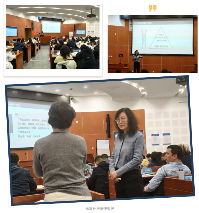 在下午的培训课堂,杨教授聚焦于如何针对个体差异进行精准的识别与干预,详细分享了辅导的关键流程、常用工具与沟通技巧。